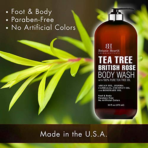 Specification: BOTANIC HEARTH Tea Tree Body Wash with British Rose Extract, Helps with Nails, Athletes Foot, Ringworms, Jock Itch, Acne…