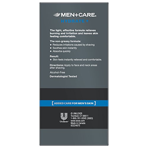Dove Men+Care understands how day-to-day shaving may also be tough on skin. Unlike traditional men?s aftershaves, which can dry skin out, Dove Men+Care post shave balms are designed to quickly relieve men?s skin from shaving irritation, right away soothing and moisturizing skin. ?As a part of our Hydrate+ range, we developed the Hydrate+ Post Shave Balm as more than a simple razor burn remedy: not only does it work right away to help reduce post shave irritation, its formula hydrates skin to provide advanced protection against dry skin, leaving your face feeling smoother and having a look healthier. ?Why make a selection Hydrate+ Post Shave Balm?It right away soothes skin after shaving. This after-shave balm reduces redness caused by shaving and helps to soothe razor burn. It absorbs quickly to moisturise men?s skin. This light, non-greasy post shave balm will keep your skin hydrated between shaves. It keeps your skin healthy. Our Hydrate+ formula Comprises vitamin B5 and other ingredients to help alleviate skin discomfort. Its alcohol-free formula has been dermatologically tested to make sure it is gentle on your skin.??Try other face products from Dove Men+Care: Hydrate+ Face Wash and Hydrate+ Pro-Moisture Shave Cream.