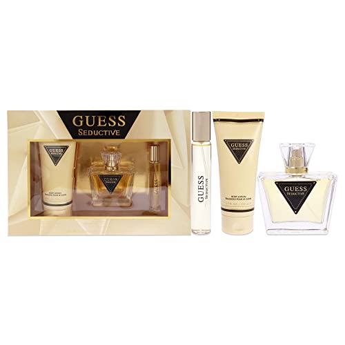 GUESS Factory Seductive Women 3 Pc Gift Set 2.5oz EDT Spray, 0.5oz EDT Spray 6.7oz Body Lotion, Silver/Navy, (GUS-SNW-F…