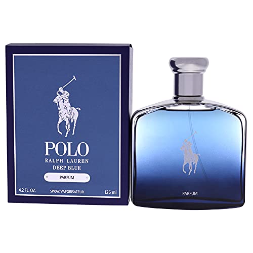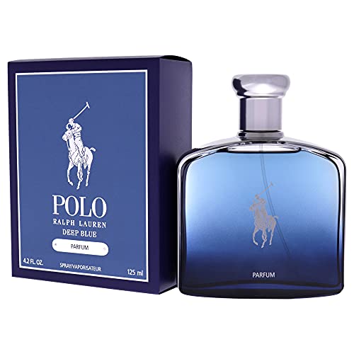 Launch year: 2020. Best notes: Melon, Mandarin, Cucumber. Center notes: Basil, Verbena, Sage, Geranium. Base notes: Musk, Woody notes, Suede. Design area: RALPH LAUREN. Scent name: Polo Deep Blue. Gender: Men’s. Class: Fragrance. SubType: EDP Spray. Size: 4.2 ounces. Barcode: 3605972230324. Ralph Lauren Men’s Polo Deep Blue EDP Spray 4.2 ouncesFragrances 3605972230324.